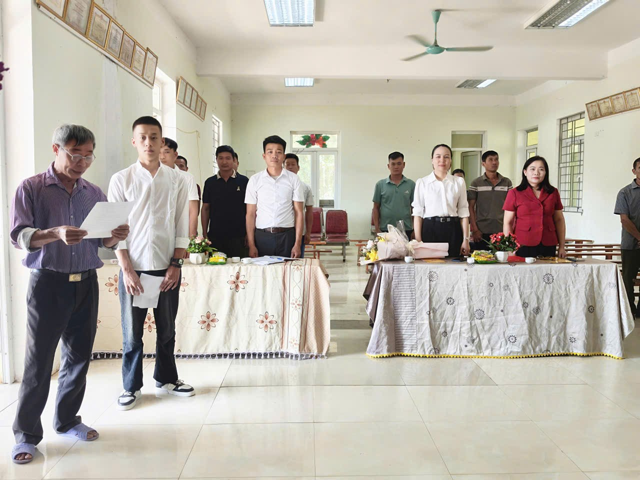 Tại Chi bộ thôn Xuân Thượng, đồng chí Vi Thị Phượng, Phó Bí thư Thường trực Đảng ủy cùng đoàn công tác đã đến dự Lễ kết nạp đảng viên mới cho tân binh Hoàng Trọng Sơn.