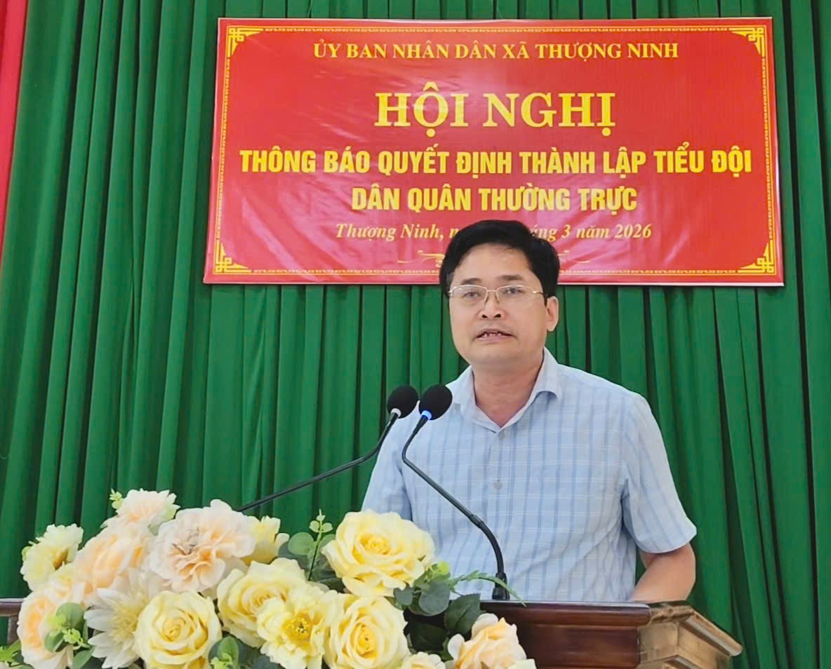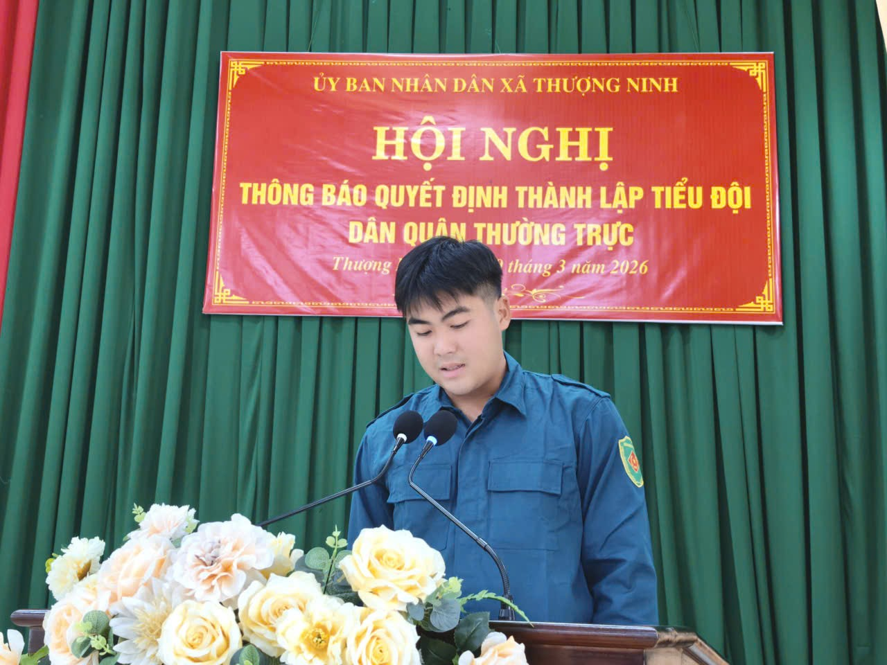 Chiều ngày 19/03/2026, UBND xã Thượng Ninh đã tổ chức Hội nghị thông báo Quyết định thành lập Tiểu đội Dân quân thường trực.