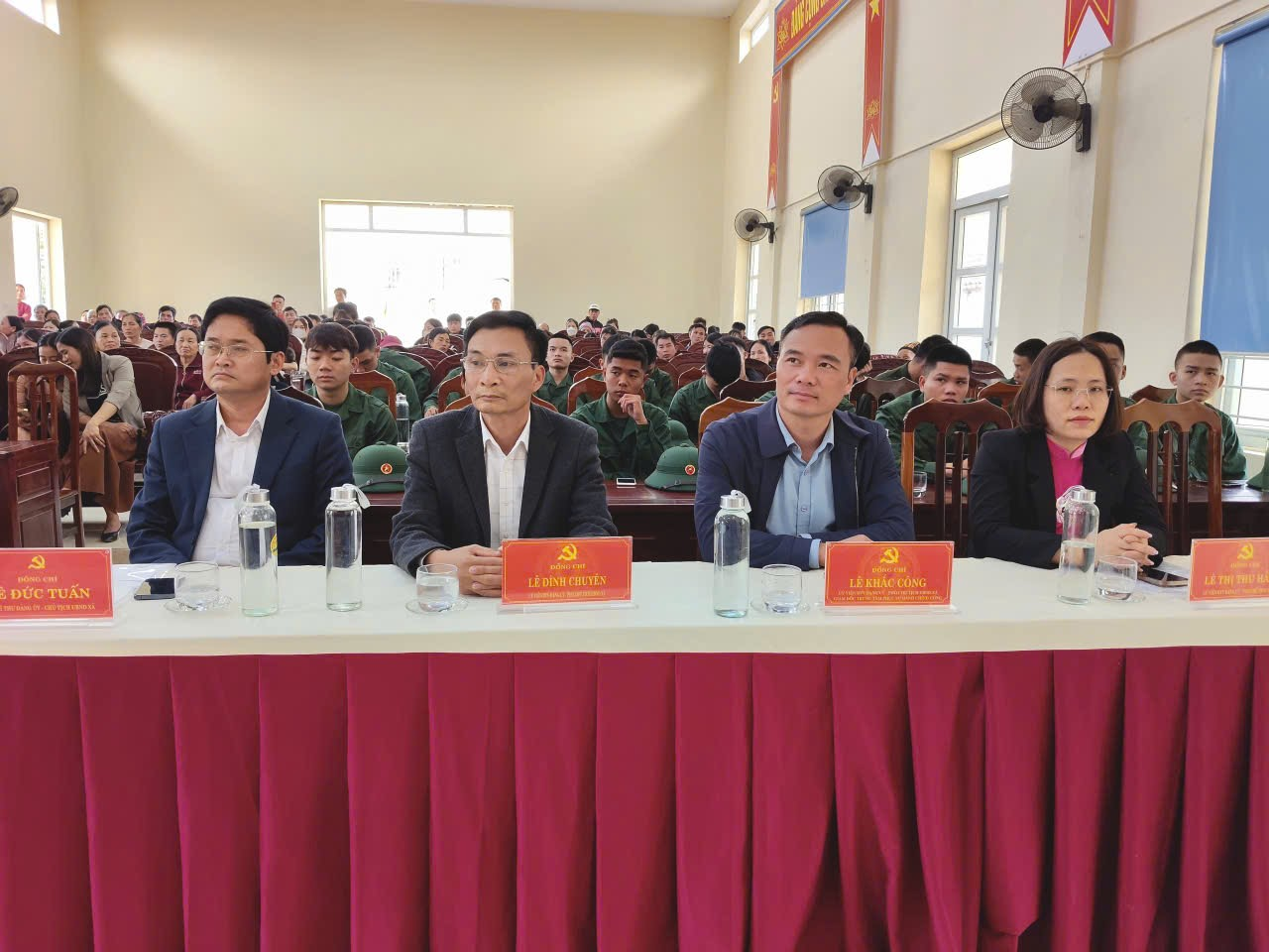 Dự buổi lễ có các đồng chí Lê Bá Hùng, Bí thư Đảng ủy, Chủ tịch HĐND xã; Vi Thị Phượng, Phó Bí thư Thường trực Đảng ủy; Lê Đức Tuấn, Phó Bí thư Đảng ủy, Chủ tịch UBND xã. Tham dự hội nghị còn có các đồng chí Ủy viên Ban Thường vụ Đảng ủy xã; Đại diện lãnh đạo Văn phòng Đảng ủy; Văn phòng HĐND và UBND; Trưởng các phòng chuyên môn, trung tâm thuộc UBND xã; Trưởng Công an, Ban CHQS xã; Chủ tịch Hội LHPN, Bí thư Đoàn Thanh niên, Chủ tịch Hội Nông dân, Phó Chủ tịch Hội cựu chiến binh xã; Hiệu trưởng các trường học, Trưởng các Trạm Y tế; Thành viên Hội đồng nghĩa vụ quân sự xã; Bí thư chi bộ, Trưởng thôn, Trưởng ban công tác mặt trận thôn, Thôn đội trưởng các thôn có thanh niên nhập ngũ năm 2026; Thanh niên nhập ngũ vào Quân đội, Công an năm 2026 và người nhà của các thanh niên lên đường nhập ngũ đợt này.