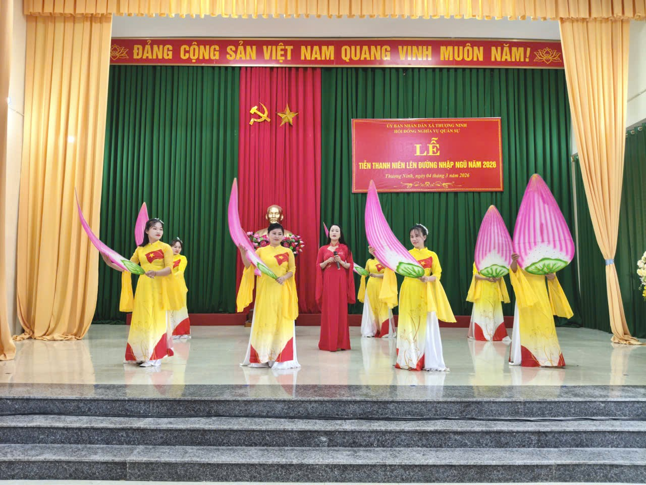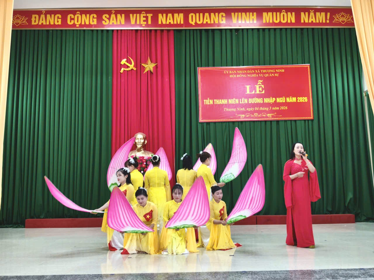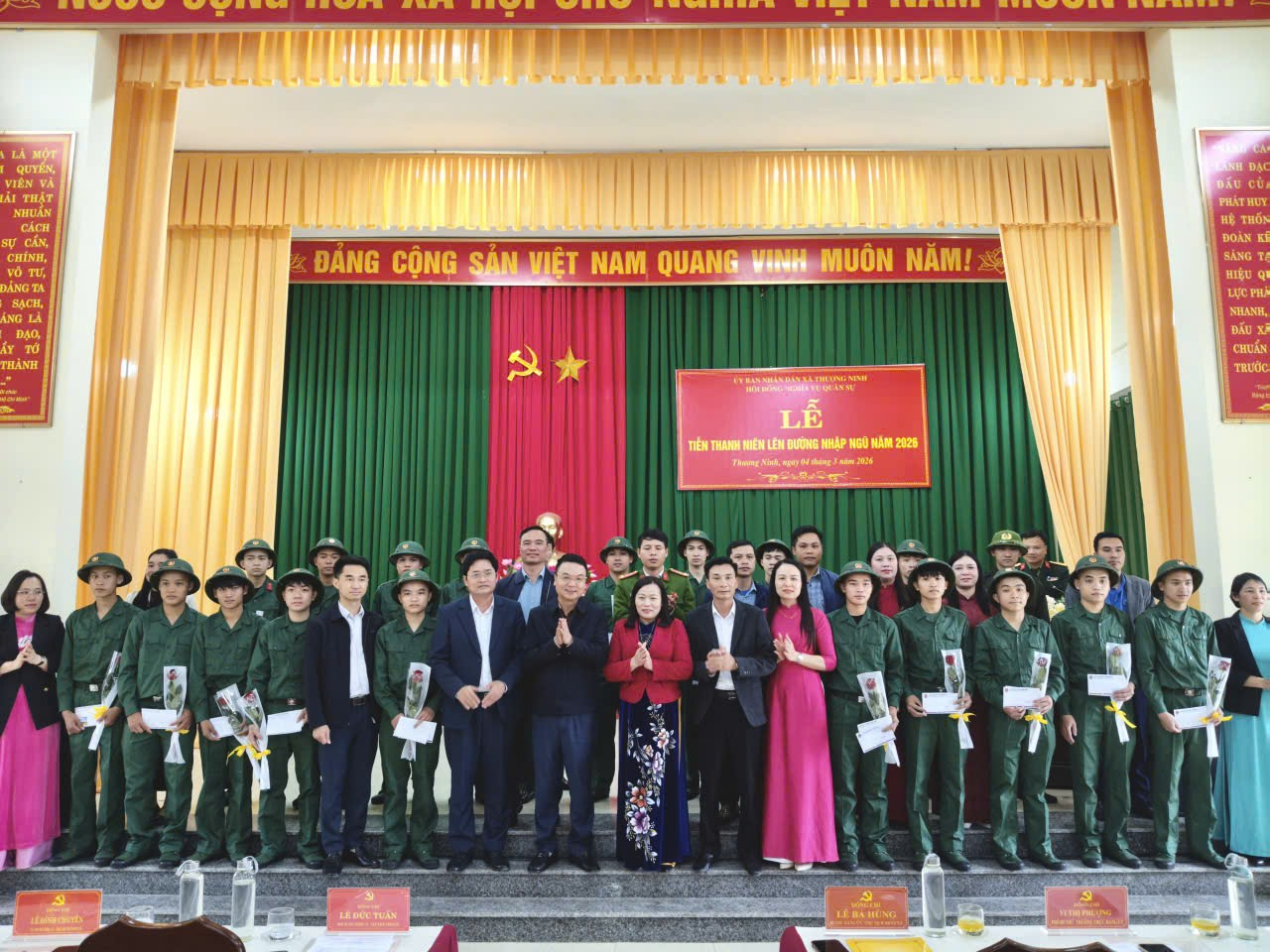 Chiều ngày 04/3/2026 (tức ngày 16 tháng Giêng năm Bính Ngọ), tại nhà văn hóa cơ quan Đảng ủy, Đảng ủy-HĐND-UBND-UBMTTQ Việt Nam xã Thượng Ninh long trọng tổ chức lễ tiễn thanh niên lên đường nhập ngũ và thực hiện nghĩa vụ công an nhân dân năm 2026.