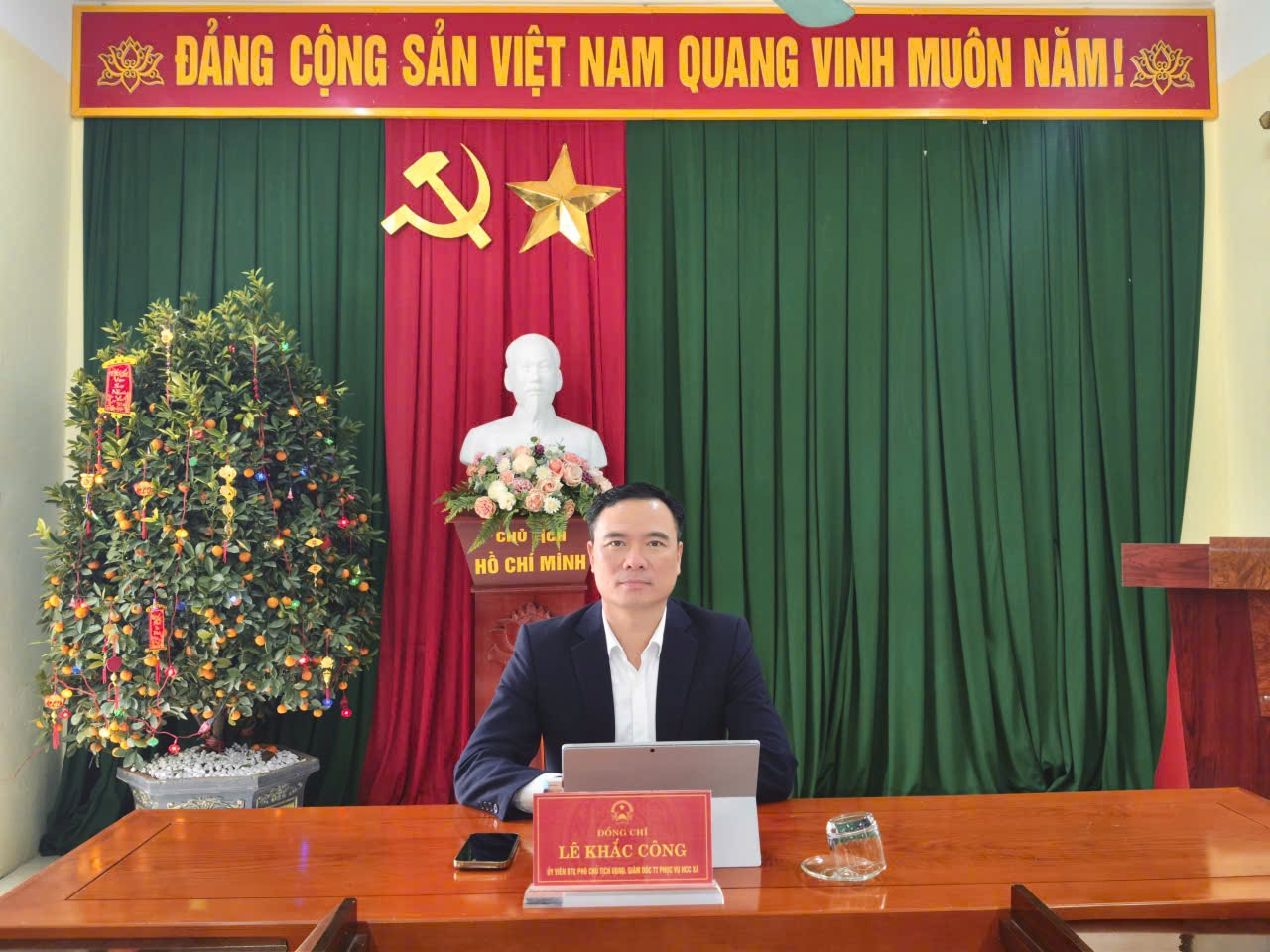 Đồng chí Lê Khắc Công, UV BTV, Phó Chủ tịch UBND xã chủ trì điểm cầu xã Thượng Ninh