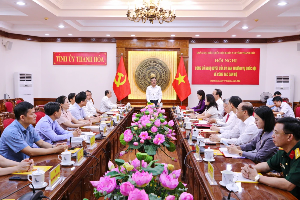 Sáng 17/4, Đoàn đại biểu Quốc hội (ĐBQH) tỉnh Thanh Hóa tổ chức hội nghị công bố Nghị quyết của Ủy ban Thường vụ Quốc hội về công tác cán bộ. Đồng chí Lê Đức Thái, Ủy viên Trung ương Đảng, Bí thư Tỉnh ủy, Trưởng Đoàn ĐBQH tỉnh dự và phát biểu giao nhiệm vụ.