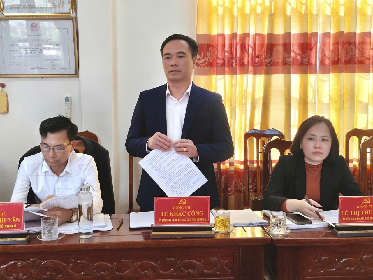 Tham dự hội nghị còn có các đồng chí Vi Thị Phượng, Phó Bí thư Thường trực Đảng ủy; Lê Đức Tuấn, Phó Bí thư Đảng ủy, Chủ tịch UBND xã; các đồng chí Ủy viên Ban Thường vụ Đảng ủy xã; Chánh Văn phòng Đảng ủy, Chánh Văn phòng HĐND&UBND xã; Trưởng các phòng Kinh tế, Văn hóa – Xã hội; Chỉ huy Trưởng Ban CHQS và Trưởng Công an xã.