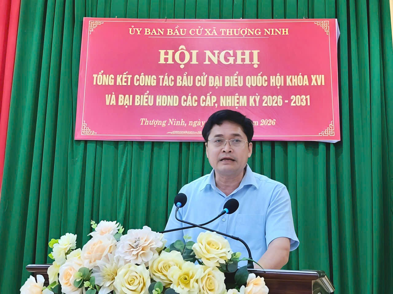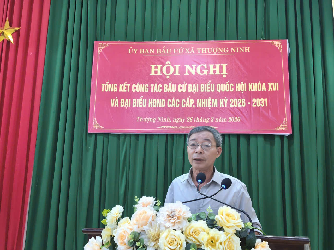 Ngày 26/3, Ủy ban Bầu cử xã Thượng Ninh tổ chức Hội nghị tổng kết công tác bầu cử đại biểu Quốc hội khóa XVI và đại biểu HĐND các cấp nhiệm kỳ 2026–2031. Đồng chí Lê Đức Tuấn, Phó Bí thư Đảng ủy, Chủ tịch UBND xã, Chủ tịch Ủy ban Bầu cử xã chủ trì hội nghị.