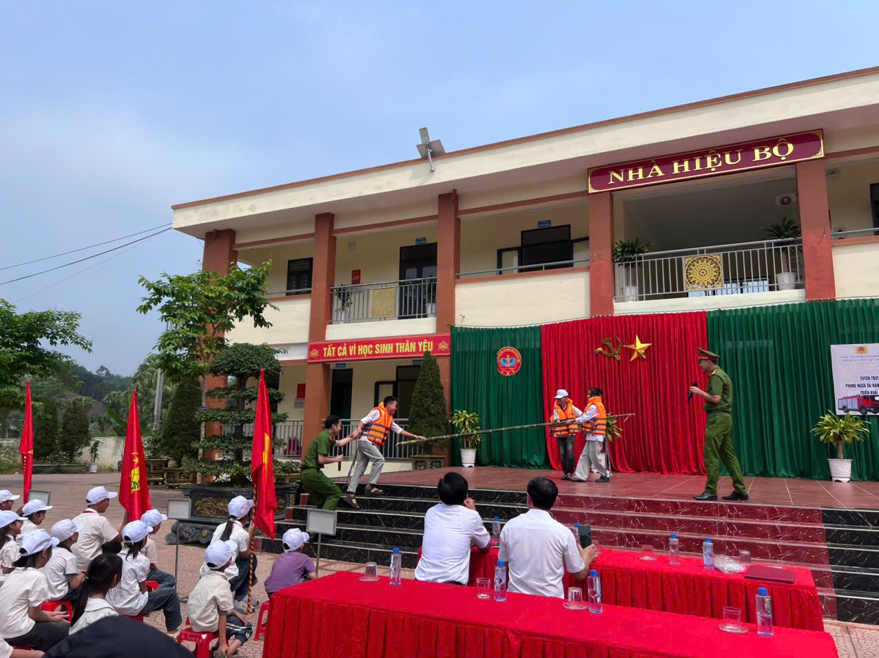 Nội dung được cán bộ chiến sĩ công an xã truyền đạt trực quan, sinh động, giúp học sinh dễ tiếp thu và ghi nhớ. Không chỉ dừng lại ở lý thuyết, các em còn được hướng dẫn kỹ năng cứu nạn, cứu hộ và sơ cấp cứu ban đầu, từ đó nâng cao khả năng tự bảo vệ bản thân và hỗ trợ người khác khi cần thiết.