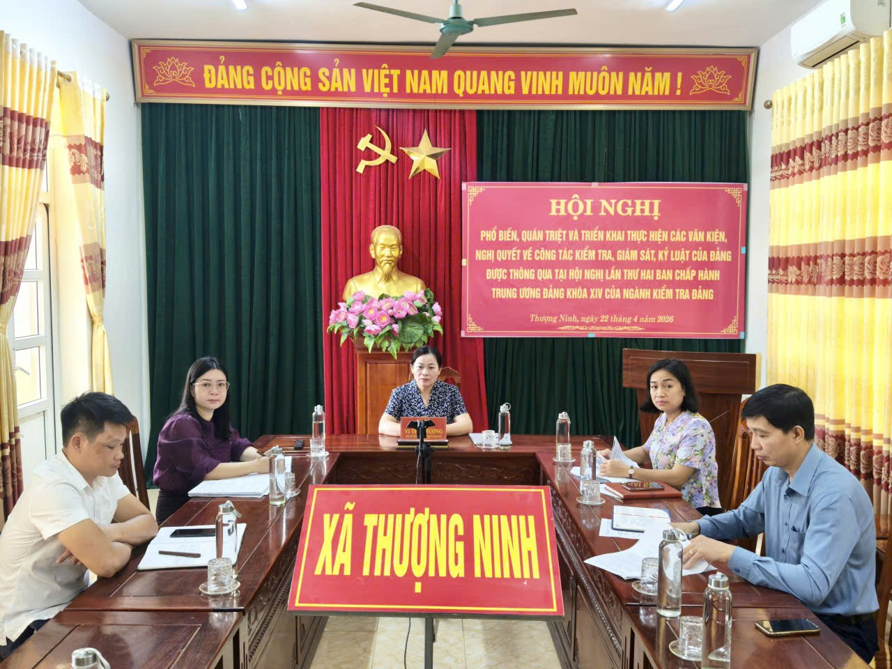 Tham dự tại điểm cầu Đảng ủy xã Thượng Ninh có đồng chí Vi Thị Phượng, Phó Bí thư Thường trực Đảng ủy xã; Chủ nhiệm UB Kiểm tra Đảng ủy, Ủy viên UBKT, cán bộ Ủy ban Kiểm tra Đảng ủy.