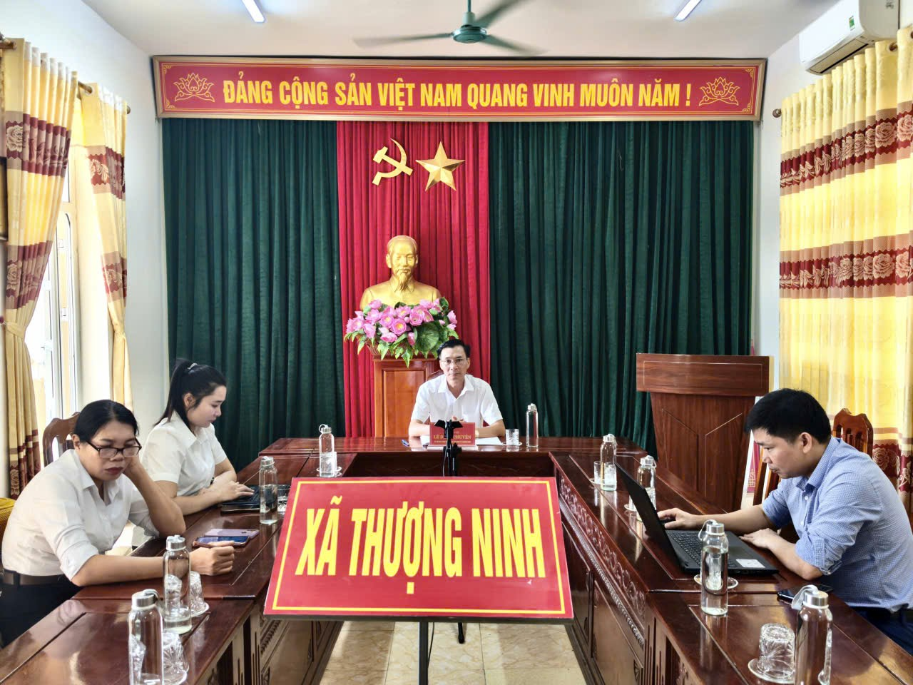Tại điểm cầu xã Thượng Ninh, đồng chí Lê Đình Chuyên, Ủy viên BTV Đảng ủy, Phó Chủ tịch HĐND xã dự và chủ trì điểm cầu; cùng tham dự có đại diện lãnh đạo Văn phòng HĐND&UBND xã; Công chức Văn phòng HĐND&UBND được giao nhiệm vụ tham mưu, giúp UBND cấp xã quản lý nhà nước về rà soát, hệ thống hóa văn bản.