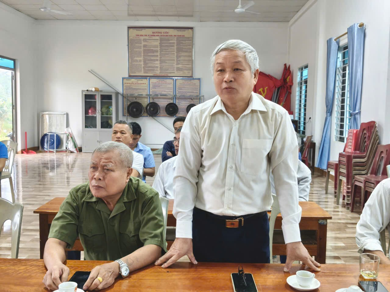 Đồng chí Lê Bá Hùng, Bí thư Đảng ủy, Chủ tịch HĐND xã dự sinh hoạt chi bộ định kỳ tháng 3 tai chi bộ thôn Đồng Tâm.