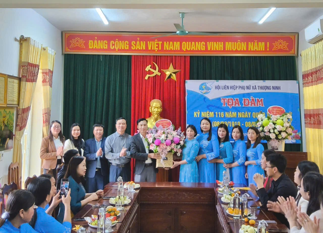 Nhân dịp này, Đảng ủy, HĐND, UBND, Ủy ban MTTQ Việt Nam xã Thượng Ninh đã trao tặng những lẵng hoa tươi thắm và phần quà ý nghĩa chúc mừng Hội LHPN xã và toàn thể cán bộ, hội viên phụ nữ.