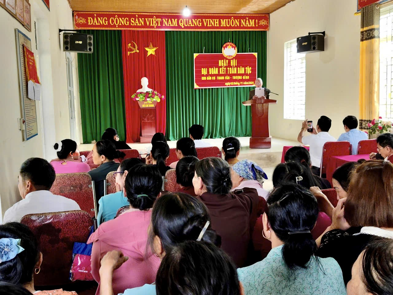 Phát biểu tại Ngày hội, đồng chí Lê Đình Chuyên, UV BTV, Phó Chủ tịch HĐND xã đã bày tỏ sự vui mừng, phấn khởi khi về dự Ngày hội Đại đoàn kết toàn dân tộc với nhân dân khu dân cư và những thay đổi tích cực của thôn. Đồng chí cũng ghi nhận, biểu dương và đánh giá cao tinh thần đoàn kết, nỗ lực của cấp ủy, chính quyền, Ban công tác Mặt trận và nhân dân thôn đã đạt được trong năm qua.