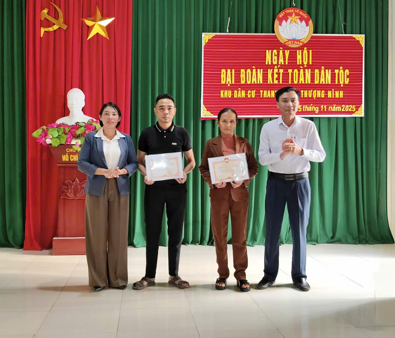 Đồng chí Lê Đình Chuyên, UV BTV, Phó Chủ tịch HĐND xã trao giấy khen của Chủ tịch UBND xã cho 3 gia đình văn hóa tiêu biểu năm 2025