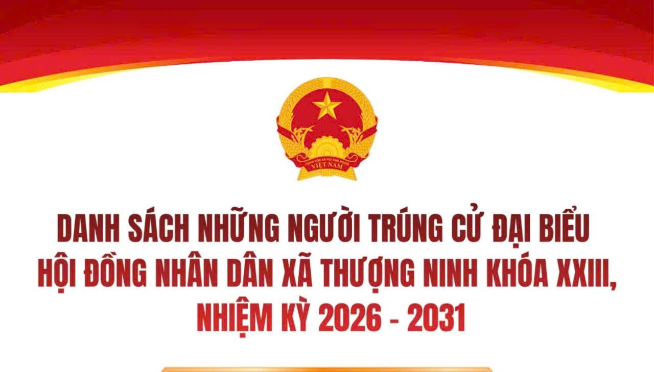 Ngày 18/3/2026, Ủy ban Bầu cử xã Thượng Ninh ban hành Quyết định số 37/QĐ-UBBC công bố danh sách những người trúng cử đại biểu HĐND xã Thượng Ninh khóa XXIII, nhiệm kỳ 2026-2031. Theo đó, toàn xã đã bầu đủ 21 đại biểu HĐND xã, bảo đảm đúng cơ cấu, thành phần và số lượng được ấn định tại các đơn vị bầu cử. Dưới đây là danh sách 21 đại biểu HĐND xã Thượng Ninh khóa XXIII: