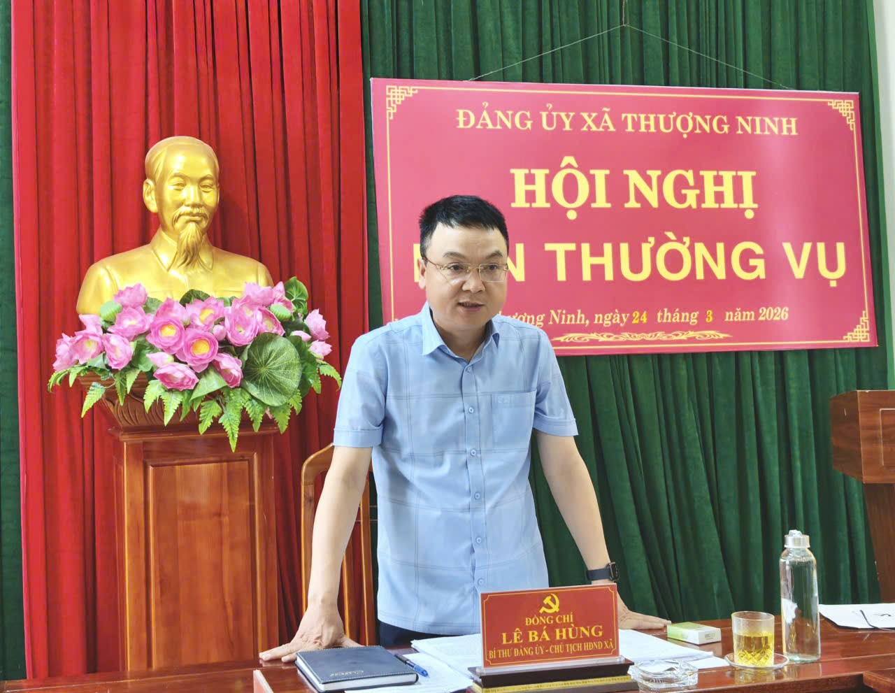 Thực hiện chương trình công tác tháng 3, chiều 24/3, Thường trực Đảng uỷ xã Thượng Ninh tổ chức Hội nghị Ban Thường vụ Đảng uỷ để thảo luận, cho ý kiến về một số nội dung quan trọng theo thẩm quyền. Đồng chí Lê Bá Hùng, Bí thư Đảng uỷ, Chủ tịch HĐND xã chủ trì hội nghị.